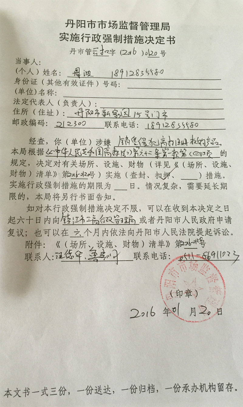 近日,乔克公司在热心客户和丹阳市市场监督管理局的帮助下,成功打假。